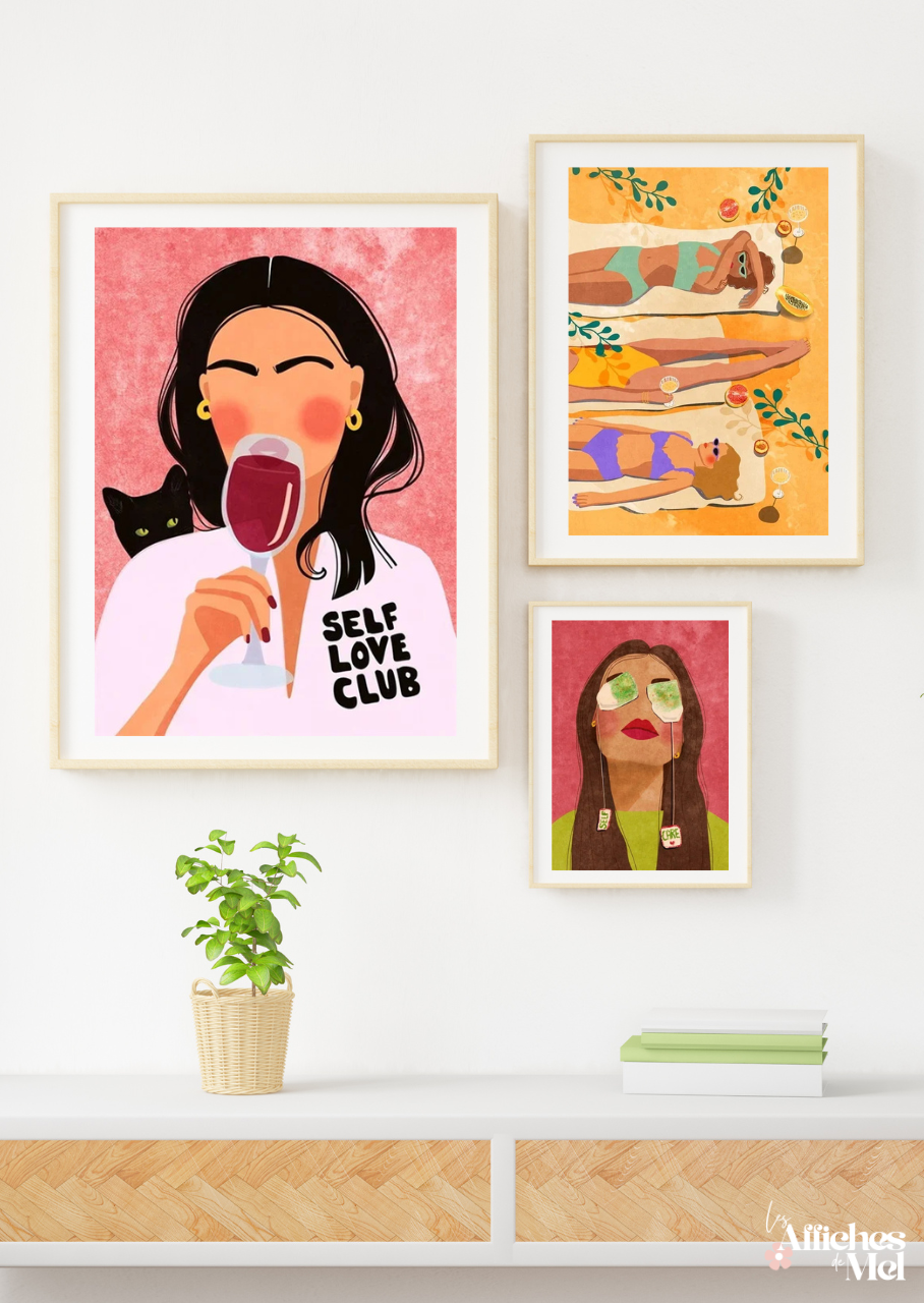 Affiche "Self Love Club" – Illustration Féminine & Moderne avec Chat Noir