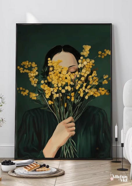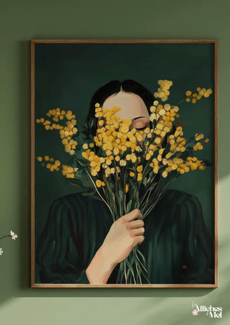 Affiche Moderne Bouquet de Mimosas – Illustration Florale Verte – Poster Femme et Fleurs – Décoration Murale Botanique