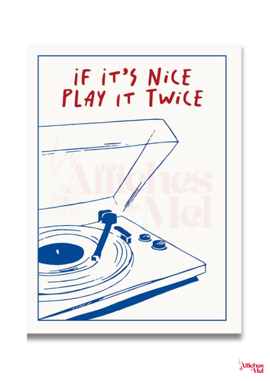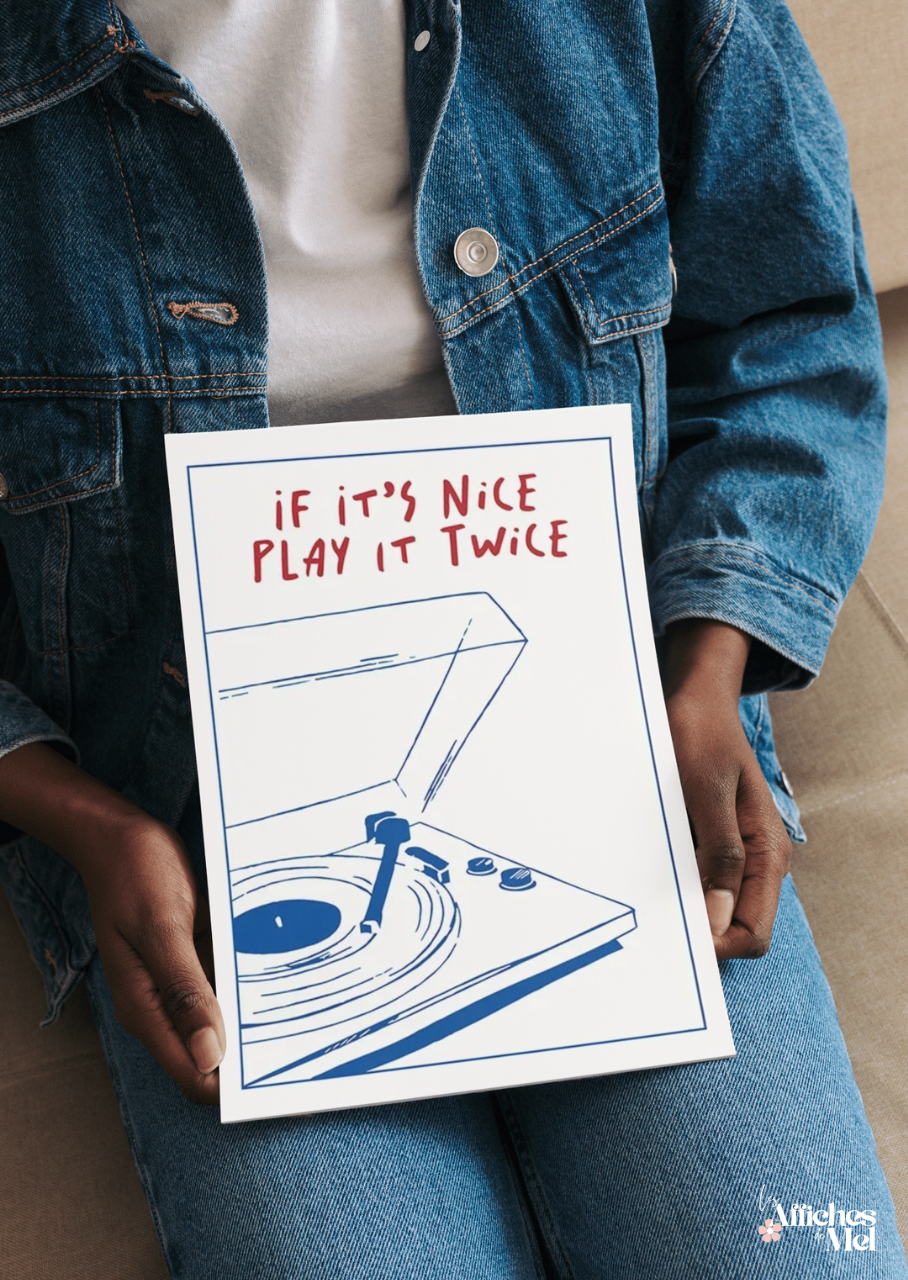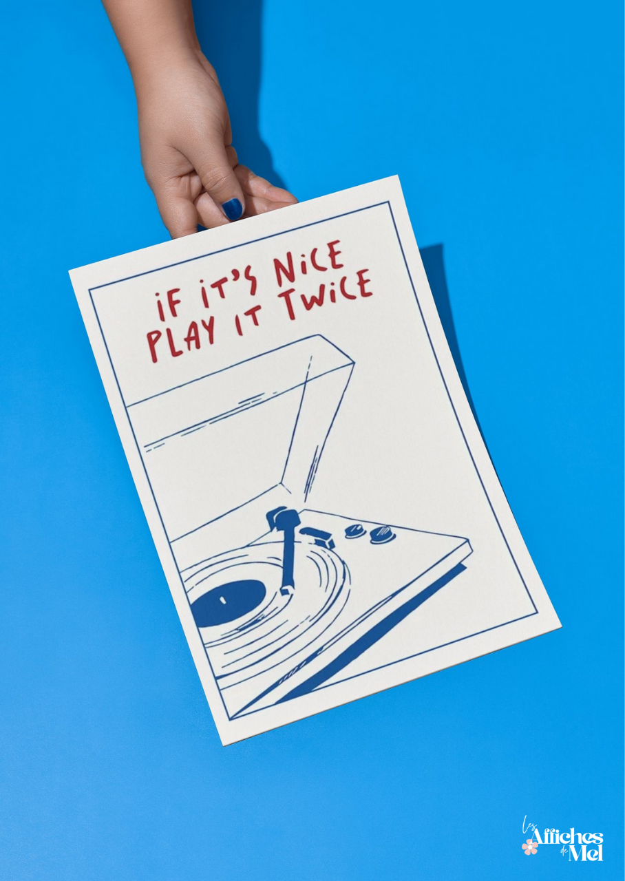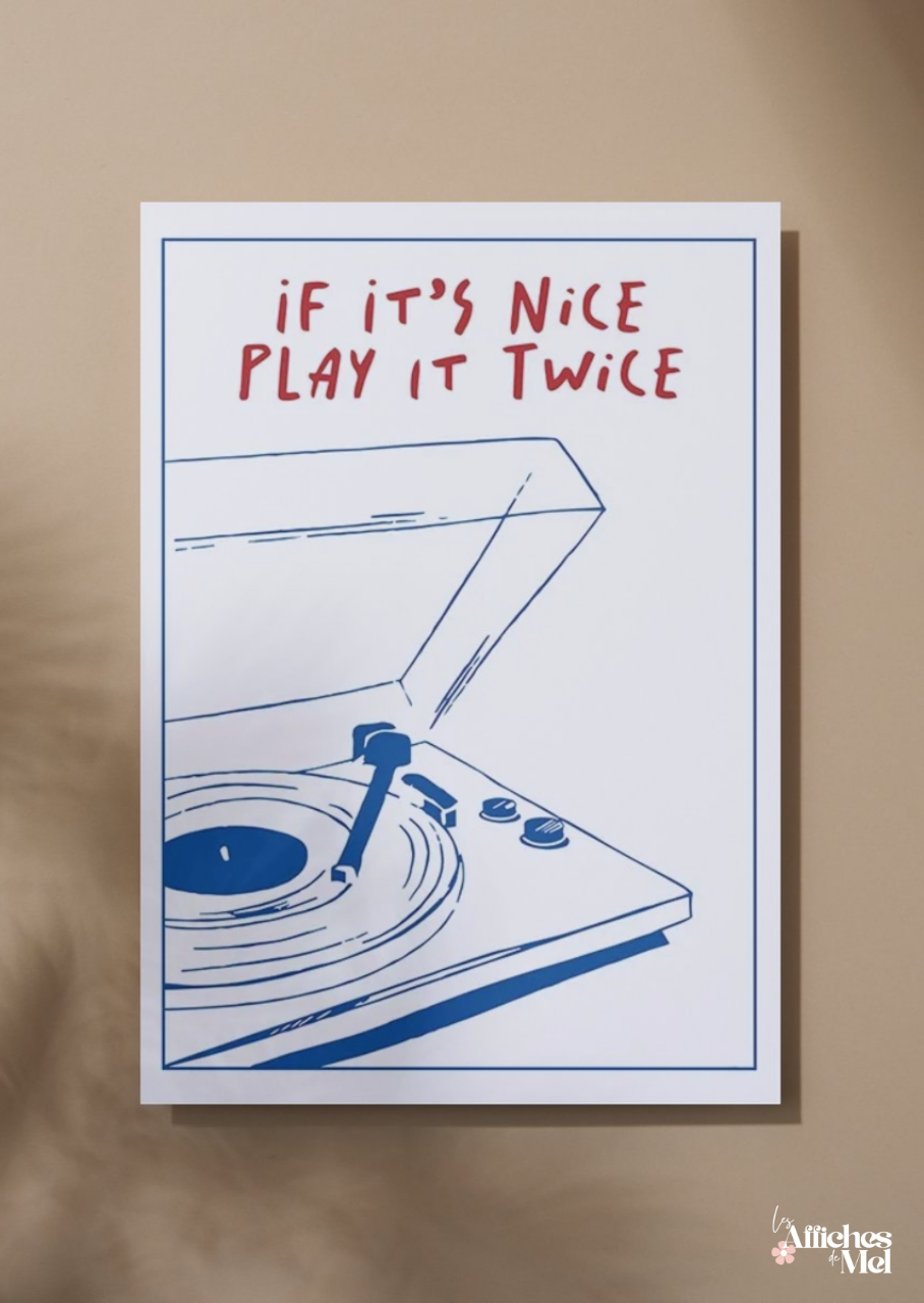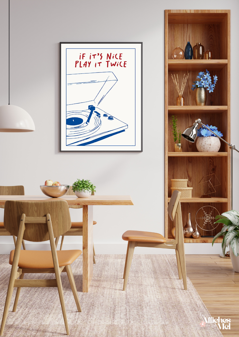 Affiche "Play It Twice" – Vinyle Vintage & Citation Musique
