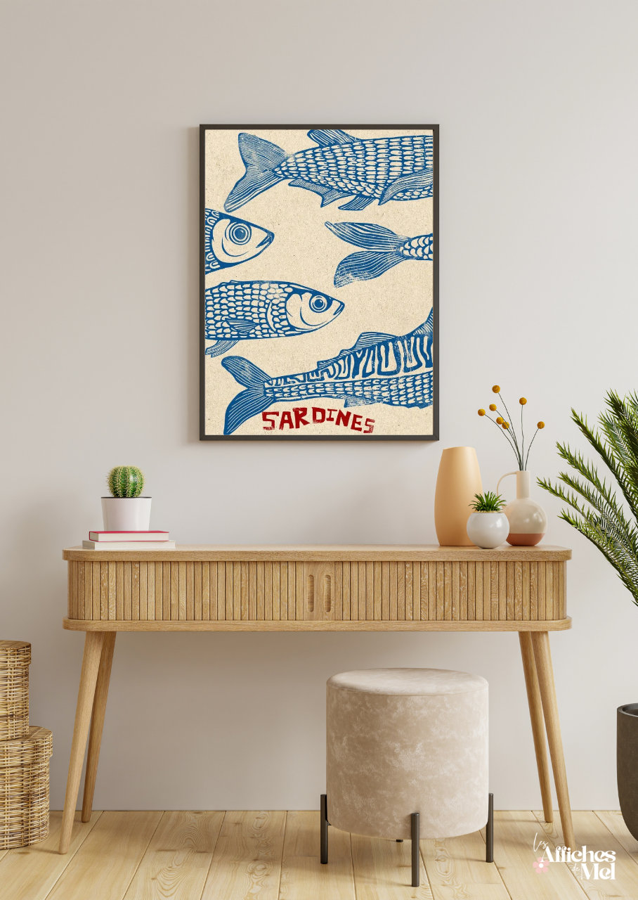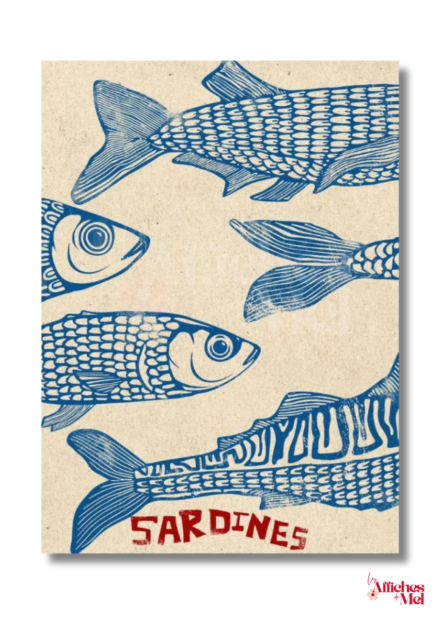 Apportez une touche d’originalité à votre intérieur avec cette affiche "Sardines" au style vintage et graphique.