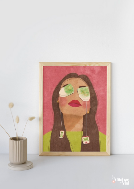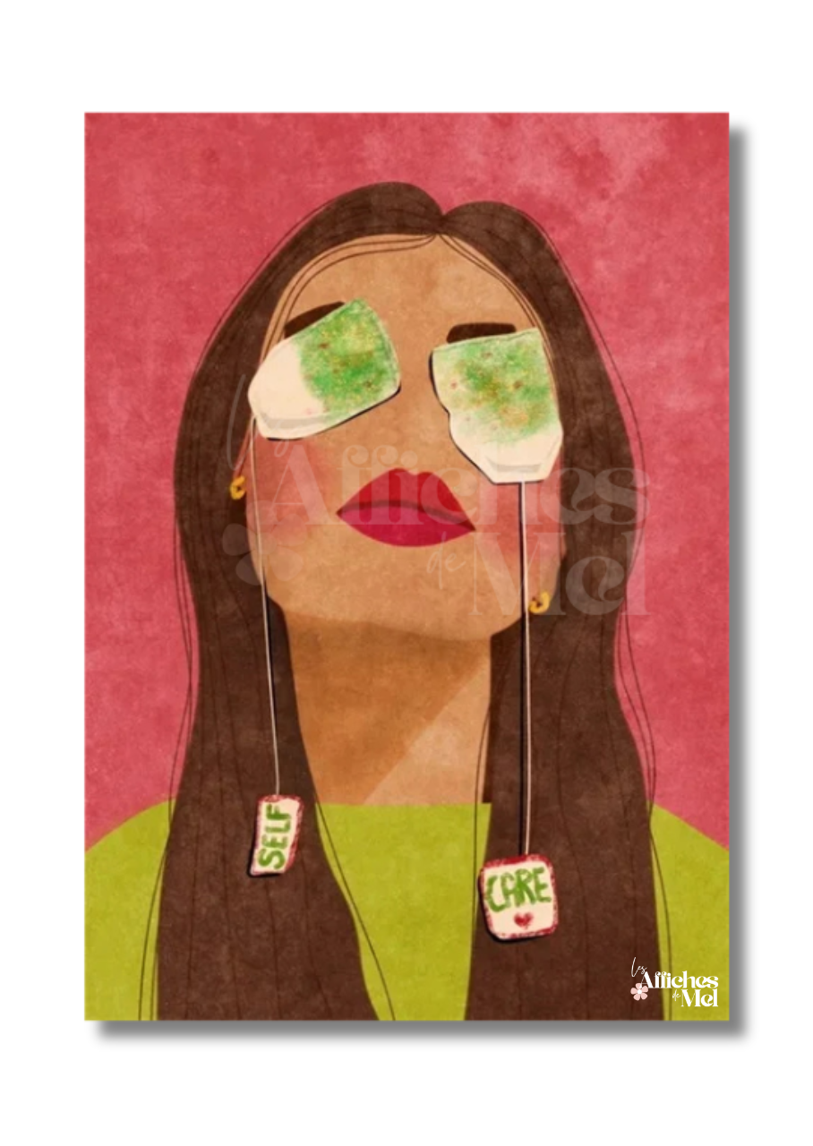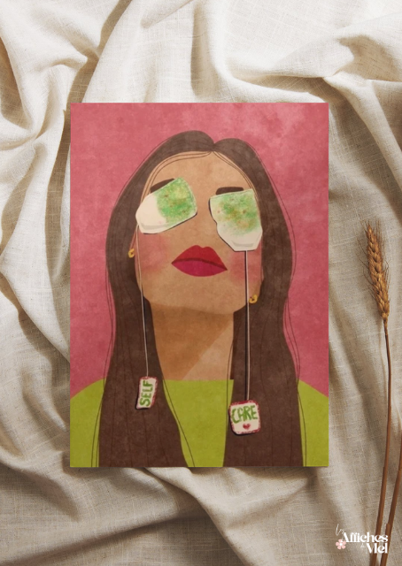 Affiche "Self-care Queen" - Illustration Féminine & Moderne avec Sachets de Thé