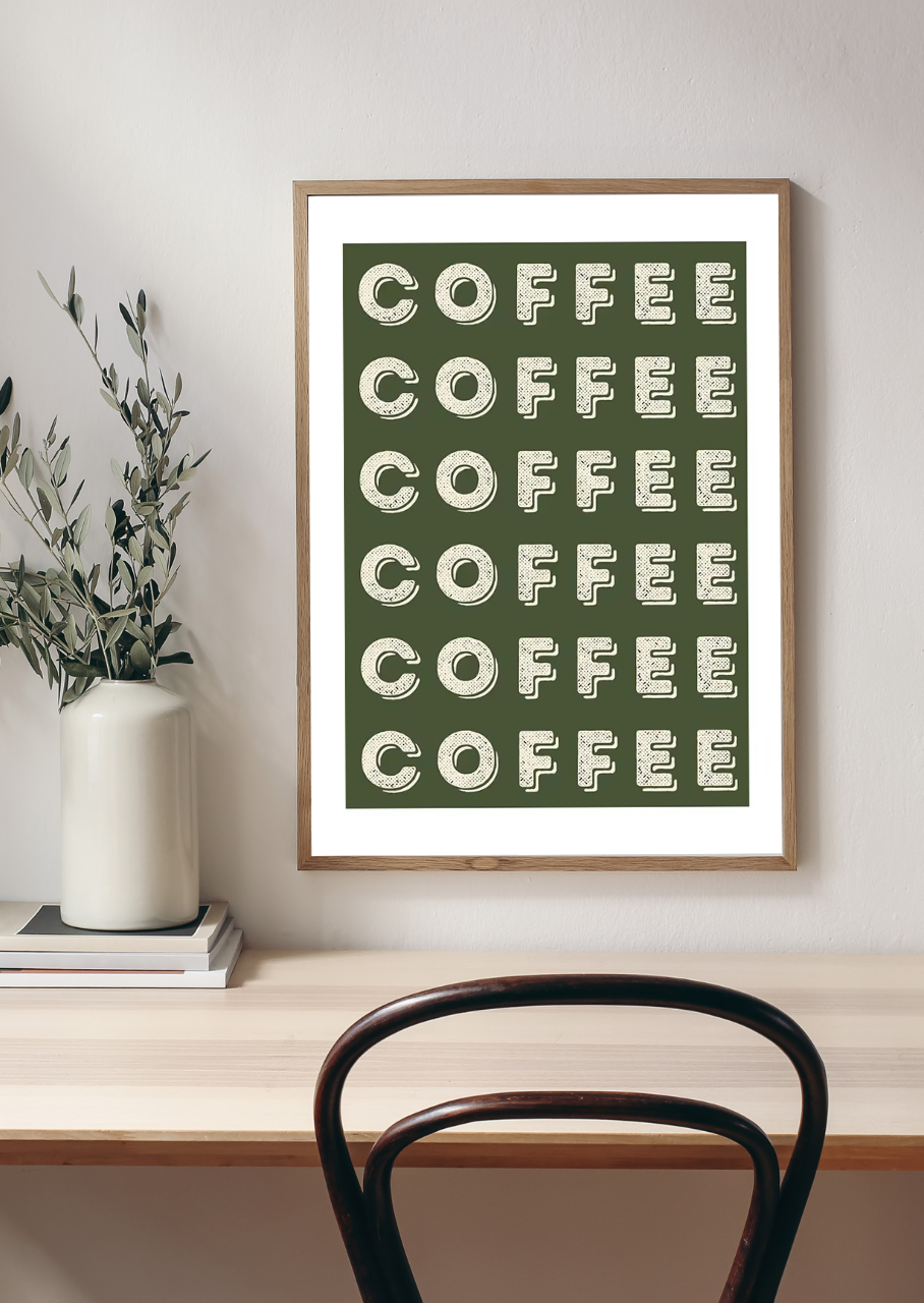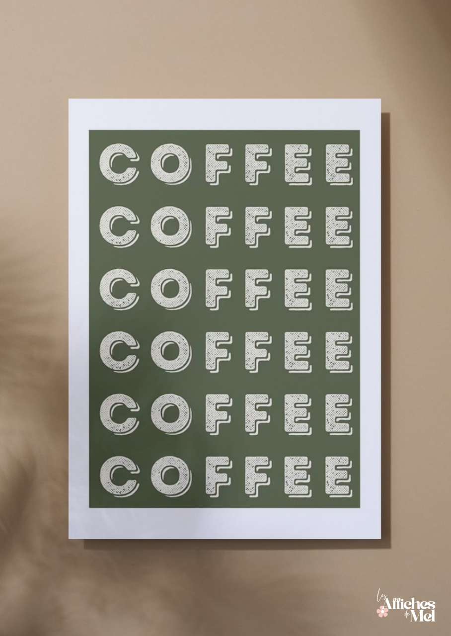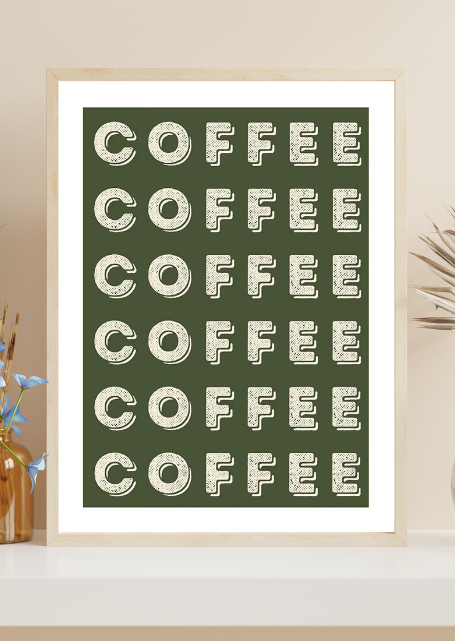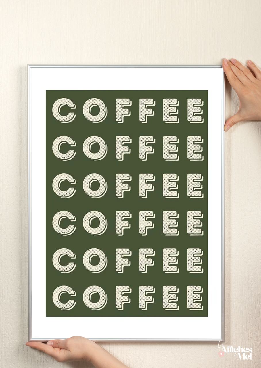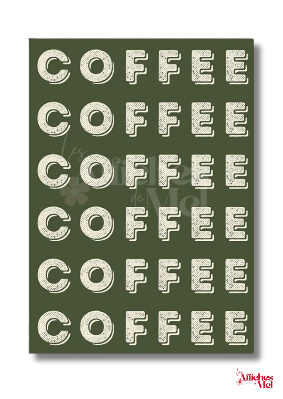 Plongez dans l’univers du café avec cette affiche typographique "COFFEE", idéale pour une déco murale rétro et chaleureuse.
